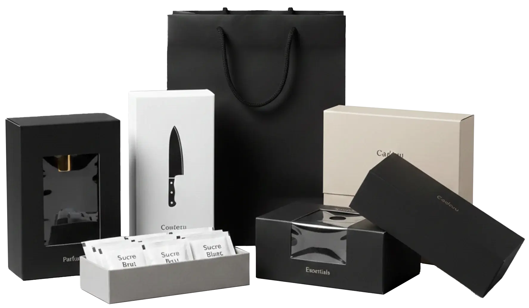 Every box receives measurements that match the product in a precise way, and these shapes offer a smooth and beautiful presentation on shelves.
